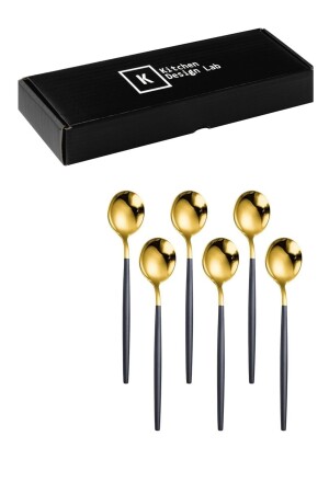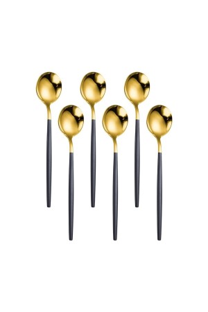 منز - فخمة ماتا ذهبية أسود قاشق قهوة 6 قطع مجموعة مقنعة ماتا ذهب أسود 6 قاشق