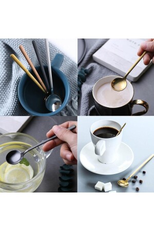 Gold Parlak Çay Kaşık Seti 6 Adet, Kutulu, 18-10 Paslanmaz Çelik 6 Kişilik Çay Kaşığı Seti Titanyum Gold Çay Kaşığı 6 Adet