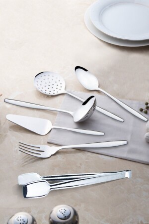 م.ن.ز-مأكولات البحر 6 قطع من الفولاذ المقاوم للصدأ الكولاندر ملعقة اللادل جريل طنغات الخدمة مجموعة