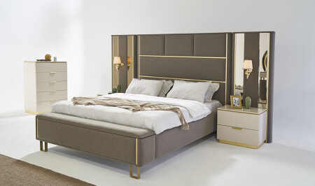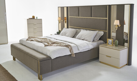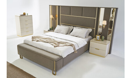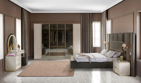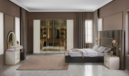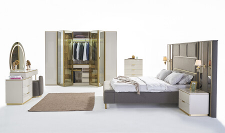 • غرفة نوم قبرص؛ 6 أوابق - قاعدة السرير والرأس 160 سم - الملابس والمرايا - 2 طاولات ملابس تشمل السعر الم