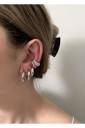 3 Çift Büyük Boy Halka Gümüş Renk Küpe
