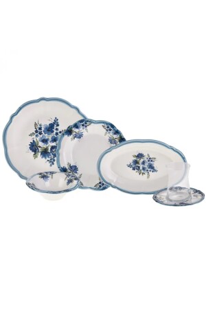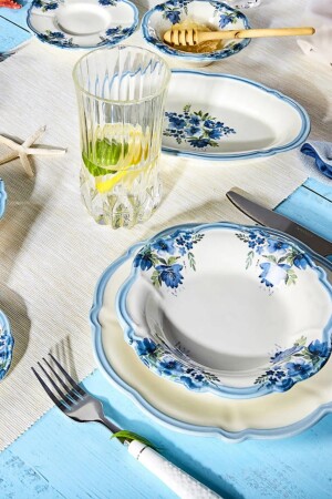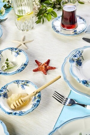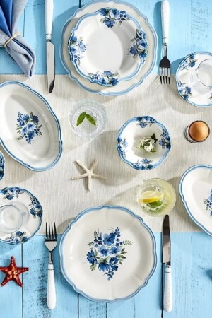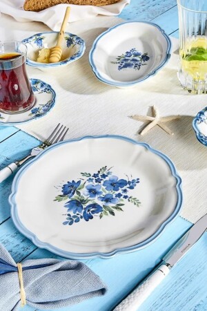 Çiğdem Blue Model 12 Kişilik 21 Parça Kahvaltı Takımı Kahvaltı Seti[ Mavi 12]