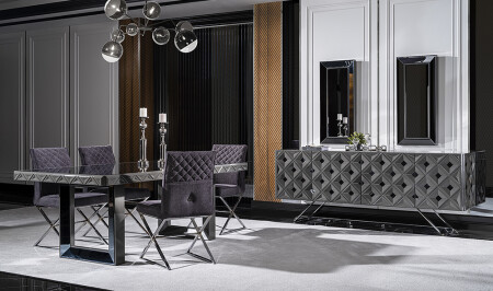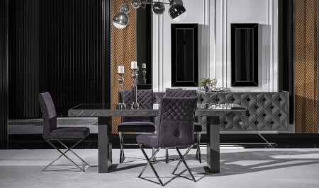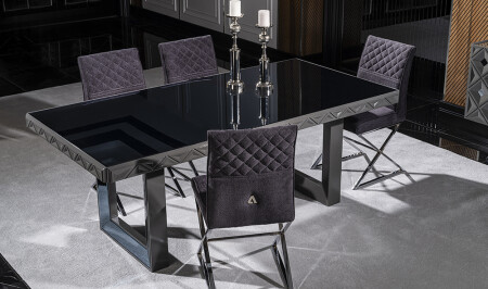 Crown Yemek Odası - Siyah - Silver