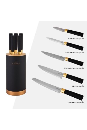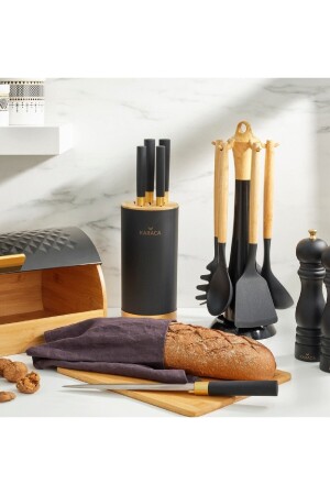 MNZ-Karaca Woodland Black 6 Piece Knife Set Set Content Chef Knife: 20 سم سكين القص: 20 سم سكين الخبز: 20 سم سكين القص: 12 سم سكين