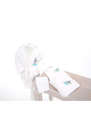 Çocuk Bornozu Kapüşonlu Beyaz %100 Pamuklu