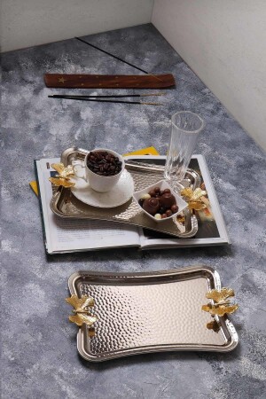 م.ن.ز-اروف 2 قطع تاتيو فراشة نمط الخدمة القهوة حامل المعدن عريس وعود الصندوق هو الفضة معدنية لا تتصدأ، ولديه مقاو