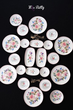 MNZ-22 قطعة البورتسلين الإفطار مجموعة الزهور الروزه الديلوكس 6 أطباق كعكة 6 أطباق الشاي مع حقائب السادل 2 أطباق الج