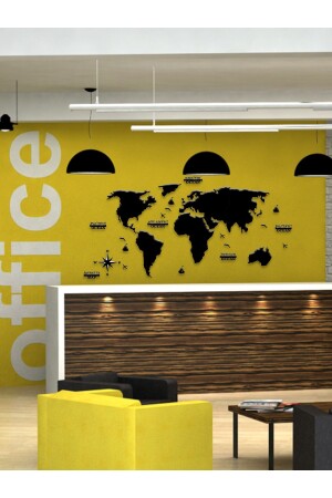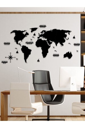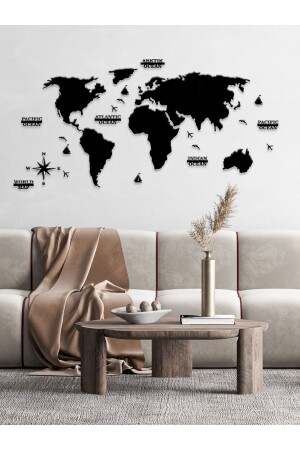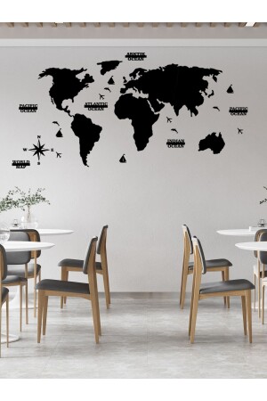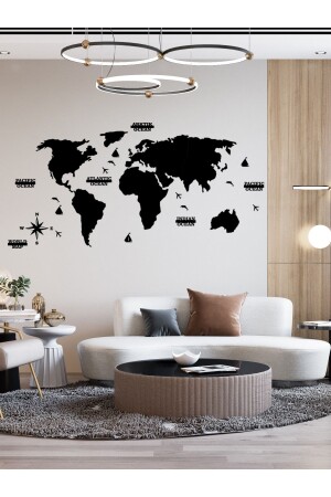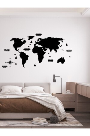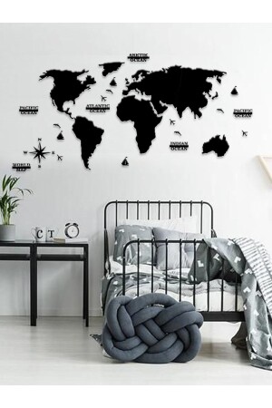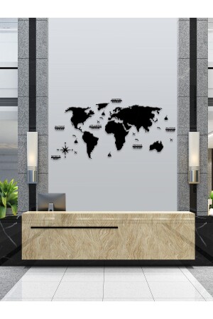 منز-2d خريطة العالم السوداء أزياء الجدار