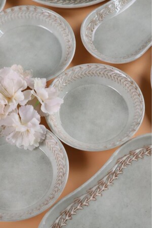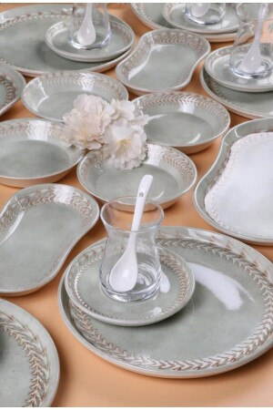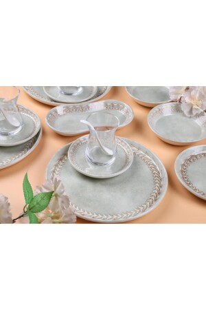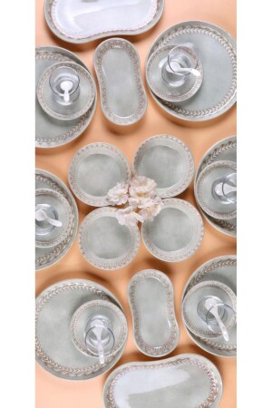64 Parça 12 Kişilik Platin Modern Krem Kahvaltı Takımı
