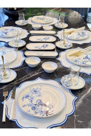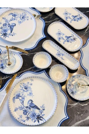 Çiğdem Blue Model 12 Kişilik 21 Parça Kahvaltı Takımı Kahvaltı Seti[ Mavi 12]