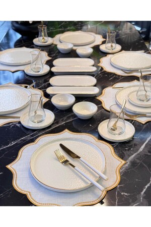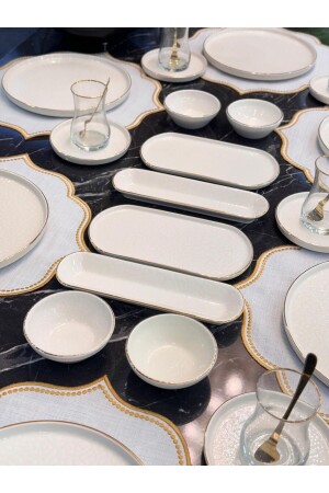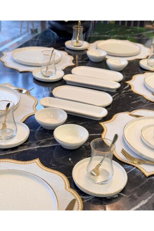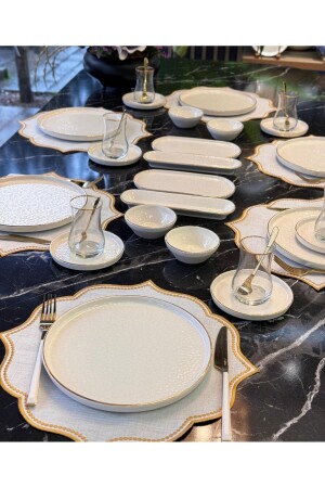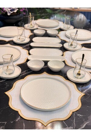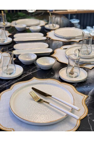 64 Parça 12 Kişilik Gold Modern Krem Kahvaltı Takımı