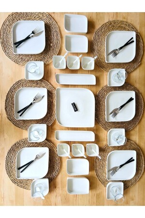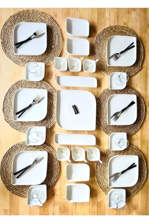 64 Parça 12 Kişilik Platin Modern Krem Kahvaltı Takımı