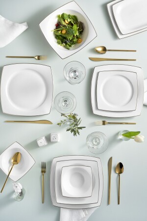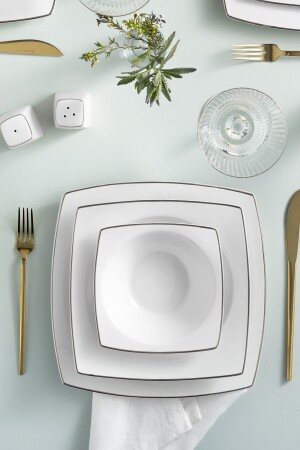 كرة الساحل (MNZ-Karaca) جيمي 57 قطعة عشاء العظام الجديد مجموعة لـ 12 شخصًا مجموعة البلاتينية مجموعة محتويات 12 قطعة طوابق خدم