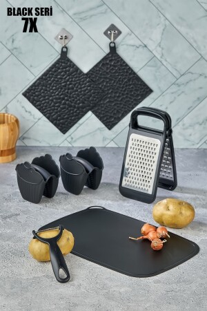 MNZ-7 قطعة المطبخ المعملي مجموعة السوداء - السوداء أدوات المطبخ المعدات المعدنية مجموعة المطبخ المعملية أدوات المطبخ المحتوي