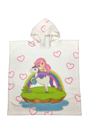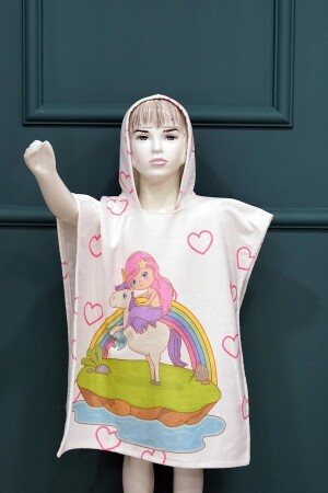 4 Katlı Müslin Kapşonlu Panço Çocuk Bornoz Plaj Banyo Prenses Tacı 600203
