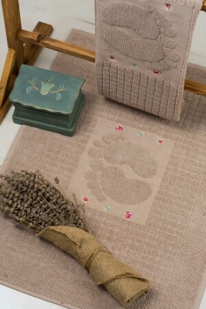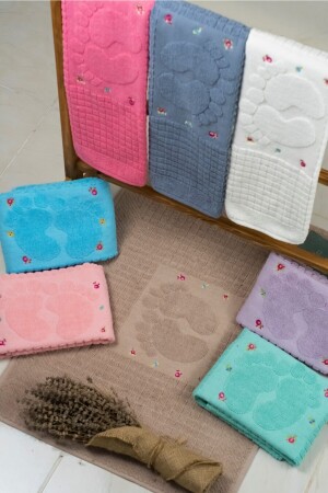 محتويات الحزمة 3 قطع ملحوظة لون 50x70 بصمة مطحنة مغطاة، منشفة للأقدام. لا تشعر بالرطوبة. لها بناء ناعم.