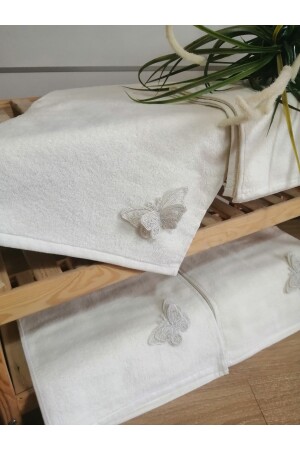 Güpürlü Saten Işleme Desenli Kutulu Lüks Çeyizlik 50x90 6'lı El Yüz Havlu Seti