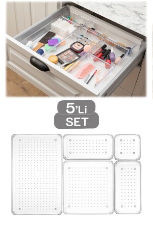 مجموعة مطبخ من 5 مجموعة من منظمة الدرجة المودولية، منظمة تجميل الحمام ومعظم المجوهرات، منظمة مكتب المكتب محتويات ومقاييس المنتج