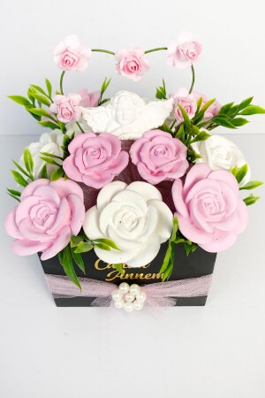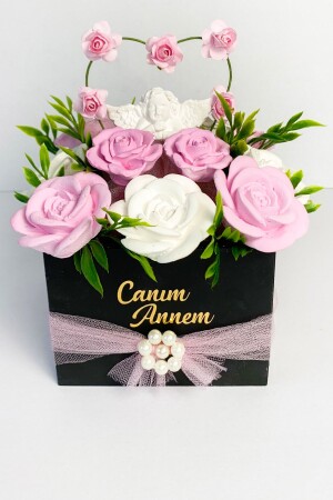 تم ترتيبها بأزهار اصطناعية لتثريع الوضوح البصري. مصنوعة من الخشب و رسومها بالكامل باليد. يتم إنتاج الحجارة برماد الحجر من الدر