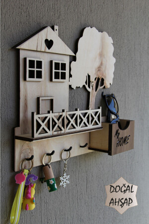 مُنظّم مفتاحات المفتاح المُزخرفة MNZ-Decorative Keychain Hanger Organizer Key Organizer Natural Wooden Hanger asklk1