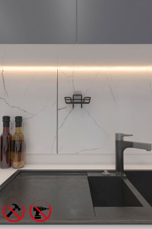 مُنَفِّذ الصابون الصلب ومتصدر الأطباق المُنظّم المُحافظ على الإسفنجات مع الغرامات المُلصّقة الأسود