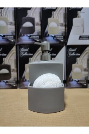 مُنحّي الصابون من MNZ-Stonware مع غرفة الإسفنجة أبعاد المنتج 10x10cm، h:19cm المنتج له مظهر متوت.