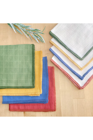 مجموعة مسح الفم من المسلين مع تفاصيل الغلق على الحواف. السعر هو ل 8 منتجات. المنتج هو 100٪ القطن. له أبعاد 30x30 سم. يوص