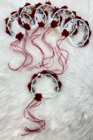 مجموعة من الحجاب العروسية من بورغوندي - كريستال زجاجي لامع - اللؤلؤ والسيكين حجاب الحنّة المزروعة 6 قطع