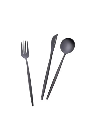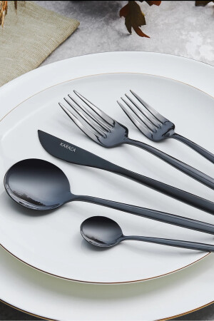 MNZ-Karaca Orion Black 30 Piece Fork Spoon Knife Set for 6 Persons Set Content 6 سكاكين العشاء (22.5 سم) 6 ملعقة طعام (21 سم) 6 شوا