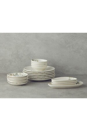 64 Parça 12 Kişilik Platin Modern Krem Kahvaltı Takımı