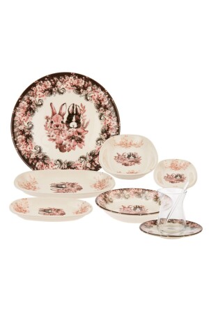 مجموعة من أطفال (MNZ-Emsan Bunny) 32 قطعة للفطور مجموعة من 6 أشخاص تضم 6 قطع من 23 سم طقم خدمة 6 كوبات الشاي 6 قطع من 13 سم