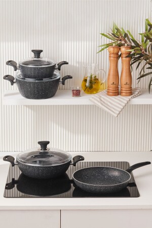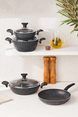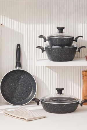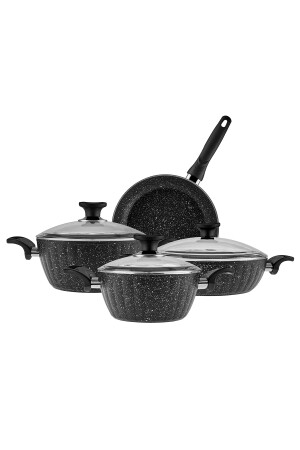 م.ن.ز-كوكبلس بيوجرانيت دريم 7 قطع طباخات مجموعة المواد السوداء: غرانيت مغلفة مجموعة المحتوى 18 سم خزنة عميقة