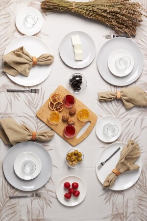 64 Parça 12 Kişilik Platin Modern Krem Kahvaltı Takımı