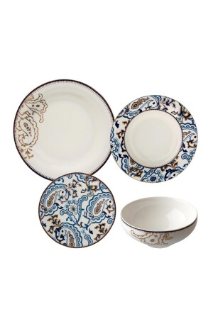 مكونات منتج MNZالوان: الأزرق اللون المخططاتالشكل: الدائر المادة: العظام الجميلةعدد الأشخاص: 6 أشخاصعدد القطع: 24 قطعة