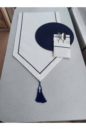 MNZ-40X140cm طويلة. نادي الأزرق الداكن مصنوع على لون أبيض. الناديل، التي تبلغ 38x38، مصنوعة من نادي الأزرق الداكن على لون