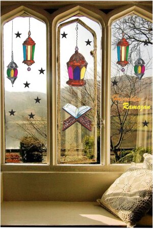 "منيز-رامضان" موضوع "النارة الملونة النجوم الترحيب علامة الجدار الزجاجية نافذة الزيادة الزيادة 110 × 50