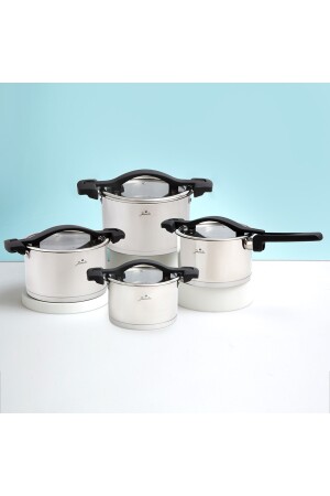 Bio Granit 7 Prç Istiridye Fildişi & Gold Kulp Tencere Ve Tava Seti EVTGR7PRÇEZMFİLDİŞİ