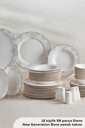 (منيز-سيينا) البورتسلين 56 قطعة عشاء مجموعة 12 شخص ذهب 153 03. 07. 8023