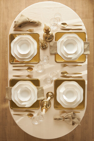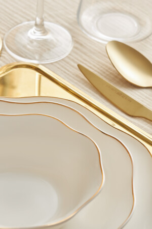 MNZ-Emsan Lotus Fine Bone 18 Piece Dinner Set للست أشخاص المواد الذهبية: مجموعة العظام الجميلة تتضمن 6 لوحات خدمة (27 سم) 6 كؤوس حساء