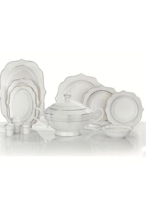 مجموعة من الأطباق العشاءية من (MNZ-*Schafer Lauren) - 60 قطعة * 12 قطعة طبق خدمة 27 سم 35 سم * 2 شاكر الملح + 2 شاكر