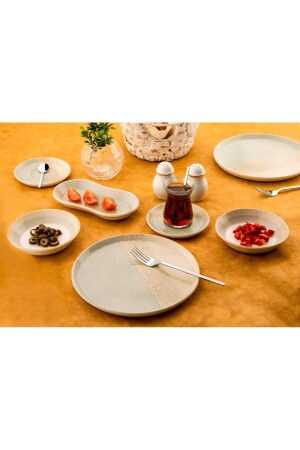 64 Parça 12 Kişilik Platin Modern Krem Kahvaltı Takımı