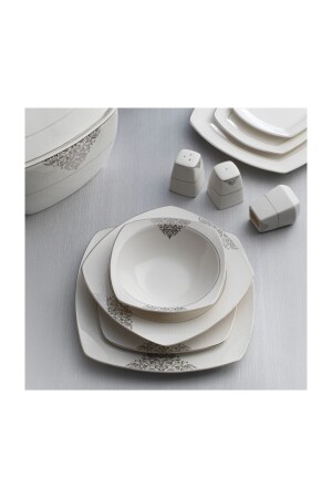 مجموعة عشاء من 60 قطعة من طراز MNZ-Emsan Yasemin لـ 12 شخصًا مجموعة البلاتين تضم 12 طبقًا ، 12 طبقًا عميقًا ، 12 طبقً