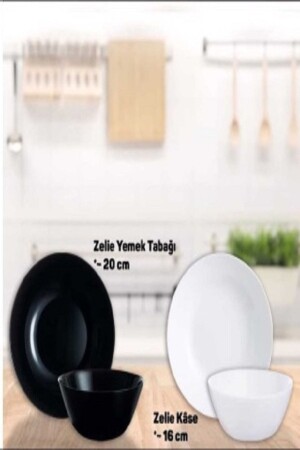 (منيز) - (أركوبال) (زيلي) الأسود 12 قطعة عشاء لـ 6 أشخاص، 20 سم لوحة عشاء فارغة، 16 سم وعاء حساء،