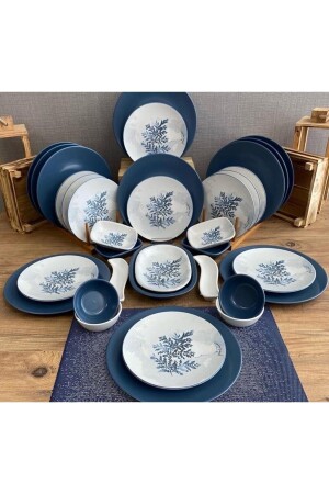 Çiğdem Blue Model 12 Kişilik 21 Parça Kahvaltı Takımı Kahvaltı Seti[ Mavi 12]
