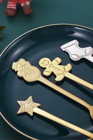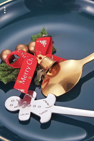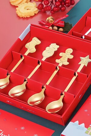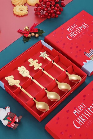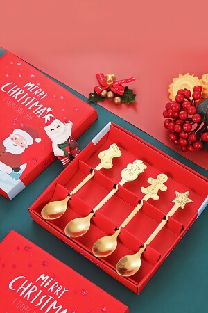 مجموعة من 4 ملعقة قهوة معدنية لا تتصلب مع حلوى. لديها معقب مصممة خاصة في عيد الميلاد. يتم إرسالها في صندوق نمط عيد الميلاد.