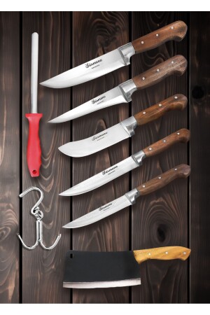 (منيز) - اليدين المهنية قصاب خشب - طقم السكاكين للذبح واللحوم