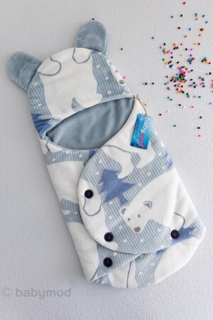 مادة (MNZ-Baby Boy Swaddle) مع صورة دبّي (Teddy Bear Figure) تفاصيل المنتج: 100% من أساطيد (Cotton Velboa) داخل