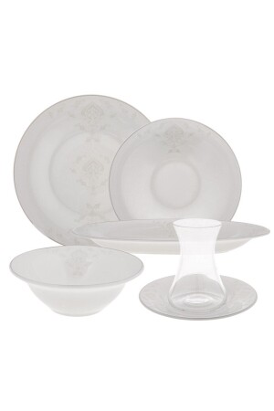 64 Parça 12 Kişilik Platin Modern Krem Kahvaltı Takımı