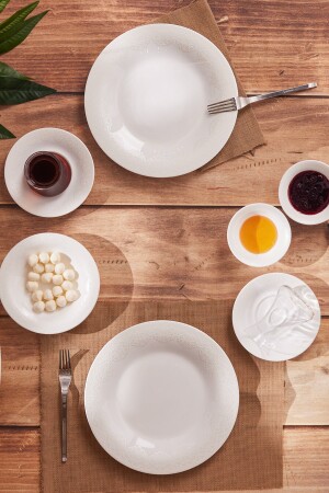 64 Parça 12 Kişilik Platin Modern Krem Kahvaltı Takımı