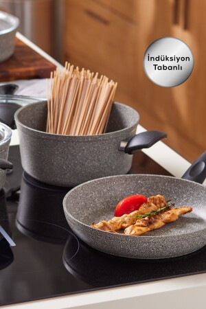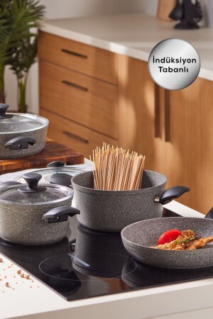 م.ن.ز-كاراكا بيوجرانيت الرمادي الجديد 7 قطعة مجموعة أدوات الطبخ مجموعة مجموعة المحتوى 18 سم بركة 2 لتر 22 سم بركة 3.5 لتر 26 سم بر
